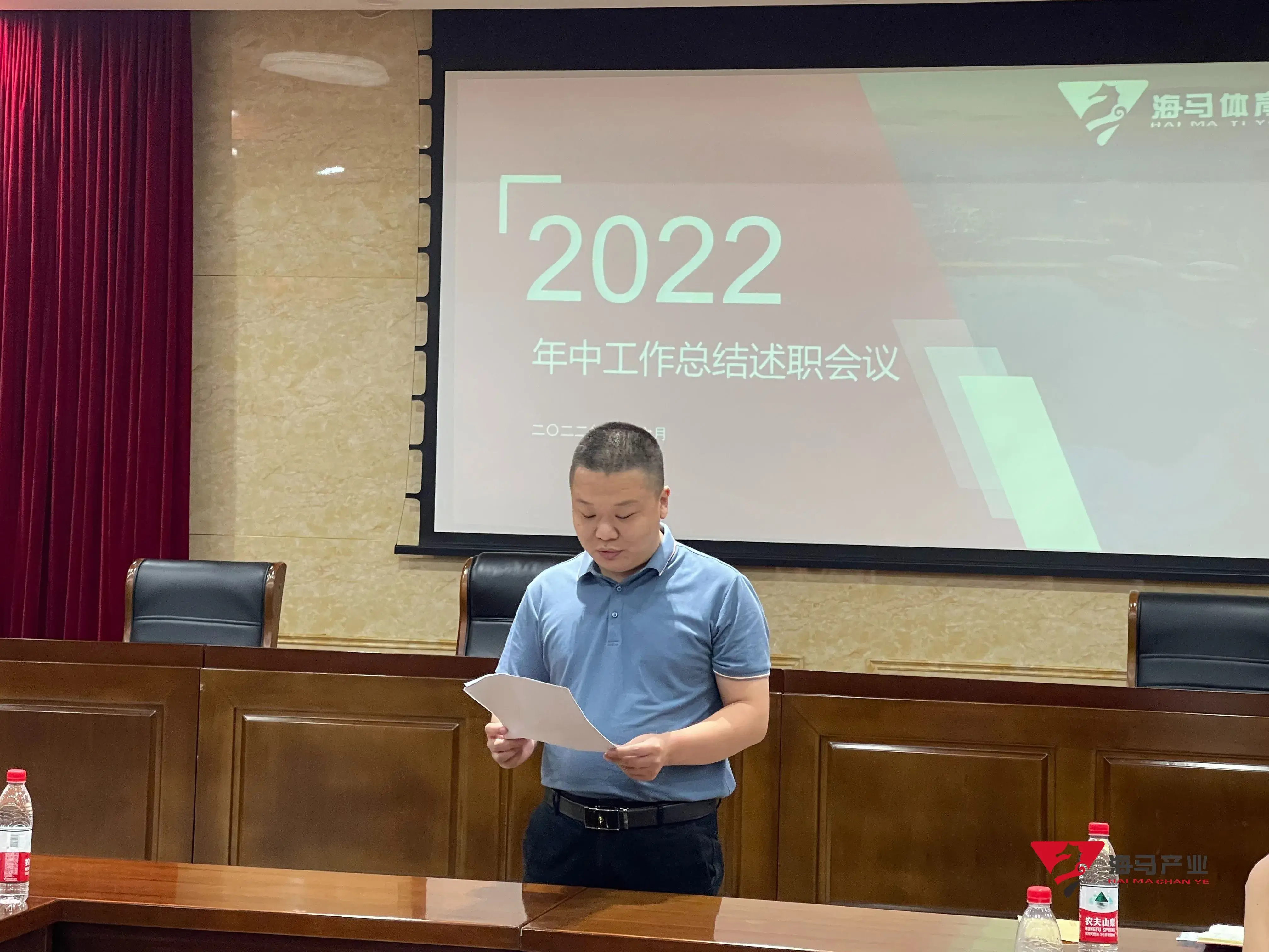 2022年6月29日下午,南宫·NG28文化产业集团在山东省体育中心二楼会议室召开年中工作总结述职会议,会议对上半年工作成果进行了总结汇报,并就下半年重点工作进行部署。总经理王海民出席了本次会议。会议由综合管理部负责人王永健主持。